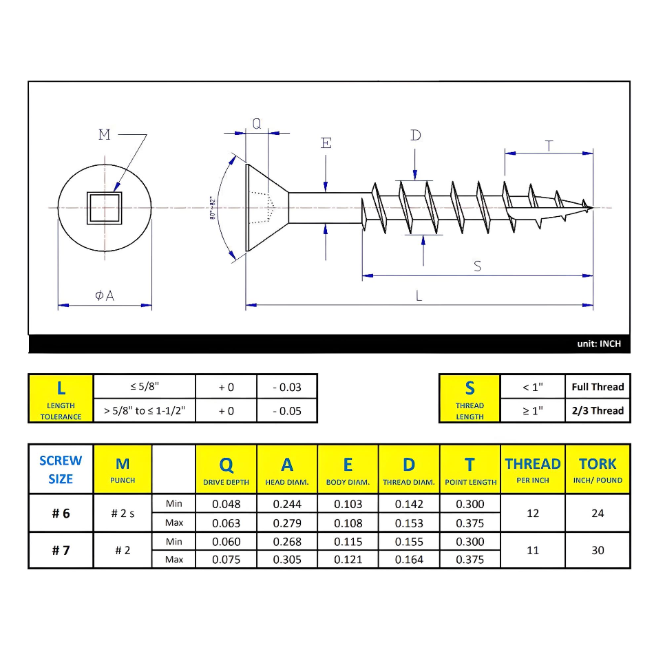Product Details : #10 x 3" Wood Screws Flat Head W/ Nibs Square Drive Coarse Thread Type 17 Point Zinc