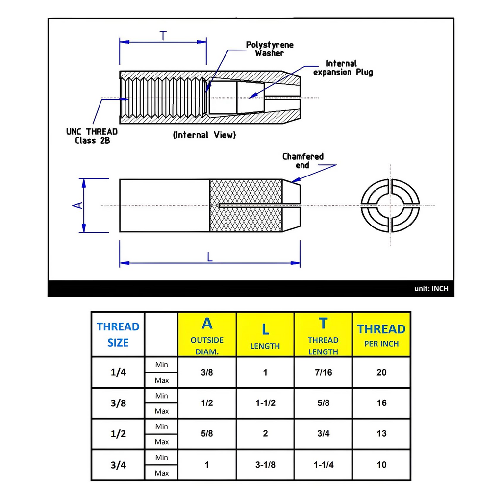 Product Details : 3/8" x 1-9/16" Knurled Drop-in Anchor - Stainless Steel 316