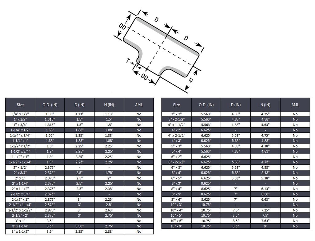•In accordance to ASME B16.9